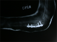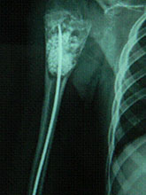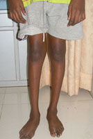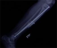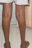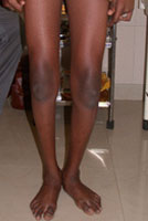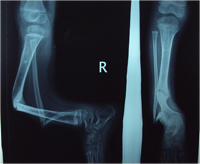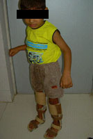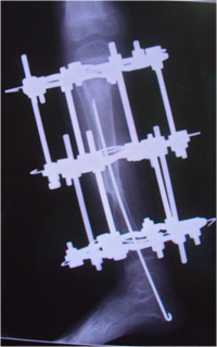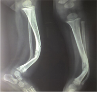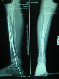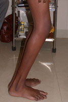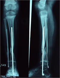 Also known as congenital "Anterolateral Bowing of Tibia" or CPT is a rare condition seen in infants and children. The tibia is bowed and the apex of the deformity in anterior and lateral in the sagittal and coronal plane respectively. Incidence is 1: 140,000. This type of bowing is pathognomomic of CPT or Congenital Pseudarthrosis of tibia, leading to a recalcitrant non-union of the tiba and fibula. Almost 50% of cases are associated with Neurofibromatosis type I or fibrous dysplasia. The deformity may be present at birth or occurs as a painless stress fracture when child starts to walk. The typical site of deformity is in the lower third of the leg and both tibia and fibula may be involved. Radiographs reveal typical bowing and the tibia may have sclerotic edges, cortical tapering, cyst formation and sometimes obliteration of meduallary cavity. CPT that Require Treatment